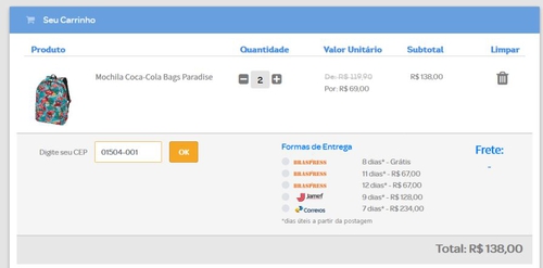 Possui FRETE GRÁTIS a partir de R$ 100 para mochilas e material escolar.