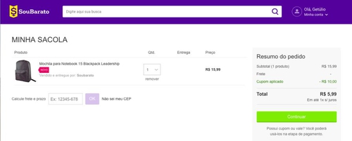O valor mínimo de uma mochila dessas na web é 65 reais