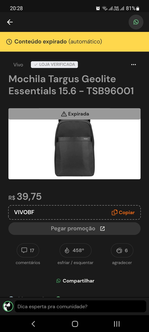 Essa é filé, qualidade fora do sério, não é gigantesca no espaço interno, mas cumpre demaia o que se propõe (notebook, tem aba para proteger bem) e tem a tal da garantia vitalícia comtra defeito de fabricação da marca