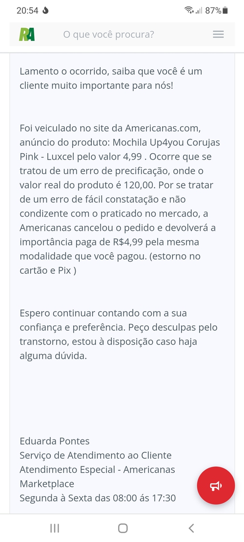 Liguei nas Americanas para reclamar mas eles não tem atendimento hoje. Alguém vai tentar reclamar e pedir a mochila ou vai deixar para lá? Kkkkkk