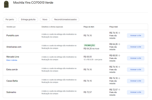 Menor preço segundo o Google Shopping