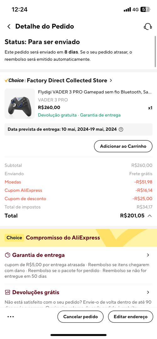 Comprei em 19/04/2024 e paguei R$238,00, já com a taxa do amor.