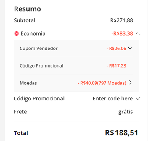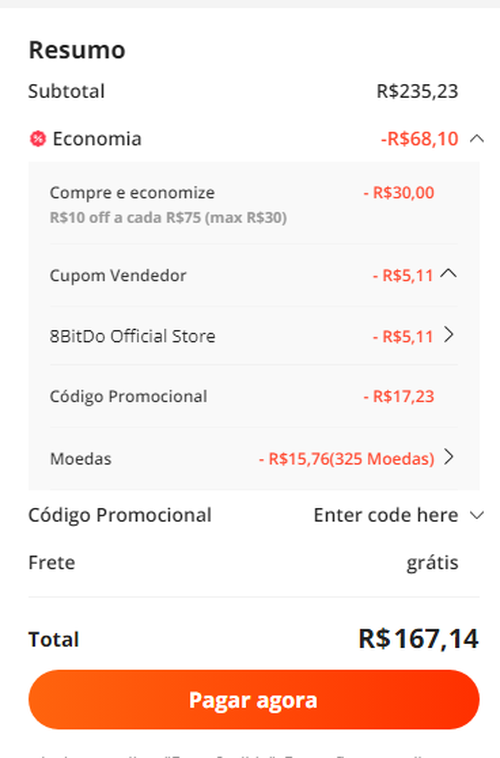 325 moedas + cupom do vendedor + cupom SEPTUP3 + R$10 off a cada R$75 (máx R$30)