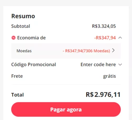 Quanto mais moedas, maior o desconto. Pra mim ficou R$ 3.044,66