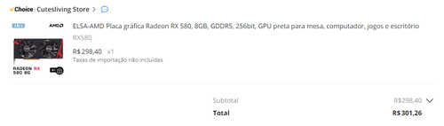 [Moedas]Placa de Vídeo RX 580 8GB 2048SP ELSA - Imposto.ja incluso
