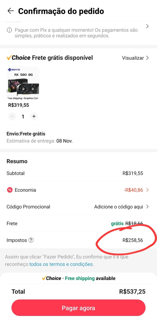 258 de imposto....vou pegar pra ajudar o governo...