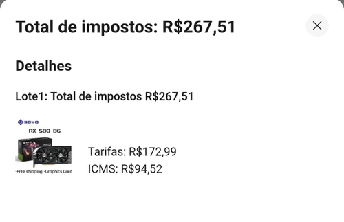 Uai este produto não passa de 50 dólares por que está cobrando 298 de impostos?
