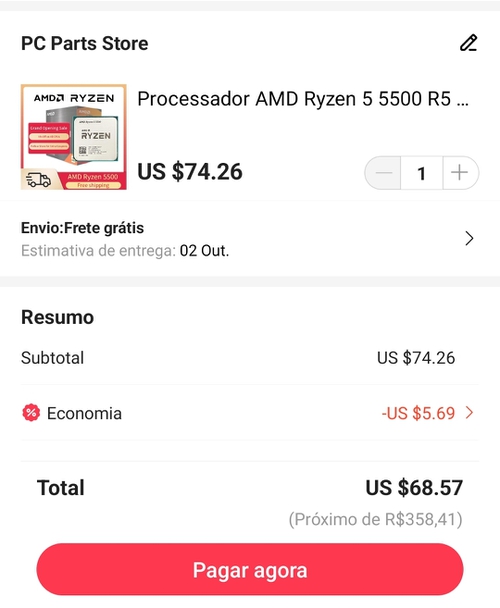 O último processador que comprei taxaram, foi um Intel i5. Custou 300 reias