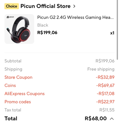 [Moedas R$ 67] Headset Gamer Sem Fio Picu