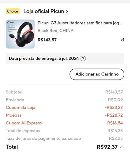 Aqui para mim ficou 114 + 23 de imposto. 🥲