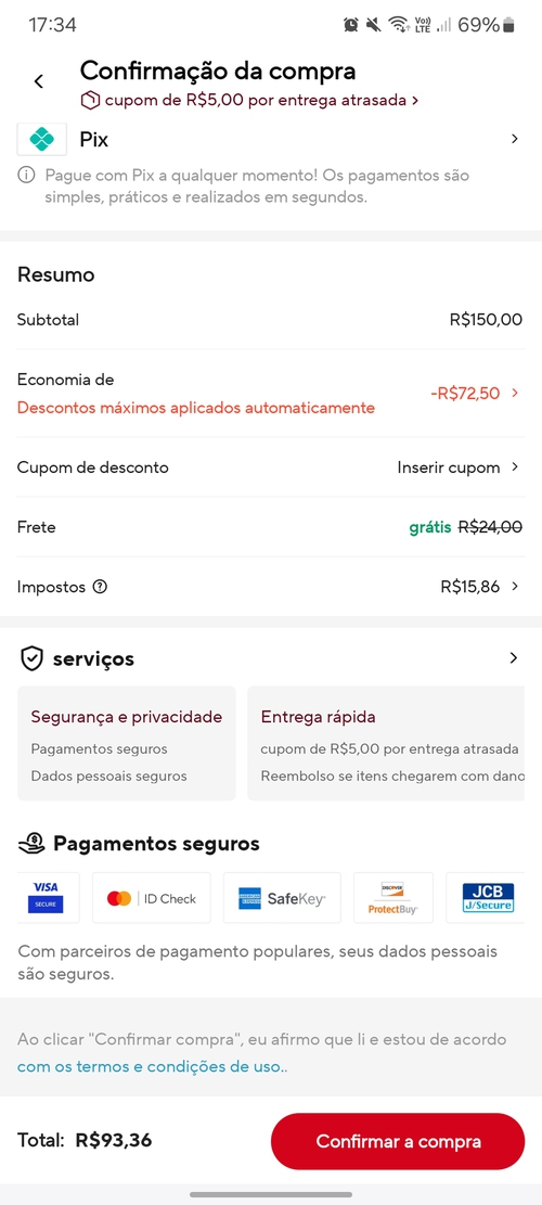 Sem o cupom, só com moedas ficou 96,90 aqui