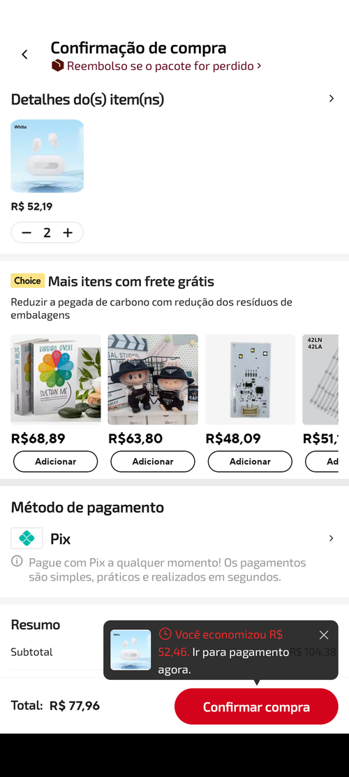 2 unidades saindo por R$ 77,96 Cupom IFPVHXJ + 941 Moedas no APP.