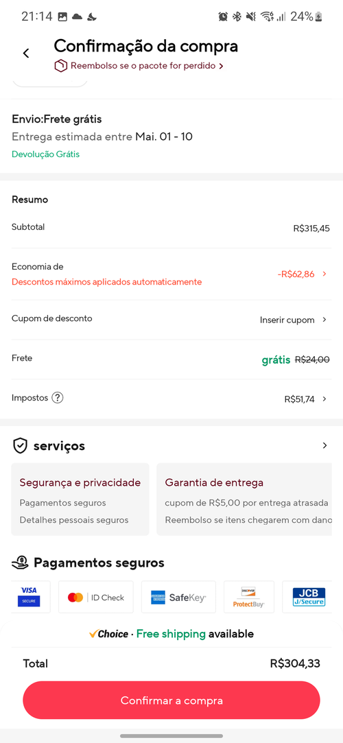 Aqui quando coloco o cupom, aparece "Por motivos de segurança, sua solicitação não pode ser processada." Alguem ja passou por isso?