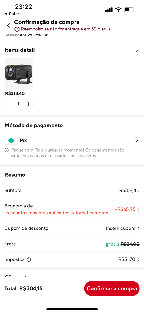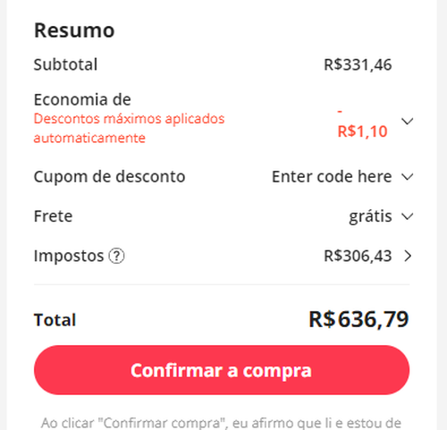 Valor considerando o uso do cupom BRAE25 (pode usar também PELANDO25, LIVRE25, INTER25, IG25, VC25) e desconto automático por moedas.