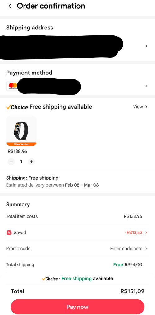 Procure pelo anúncio abaixo. Se não estiver encontrando pode ajudar clicar em anúncios diferentes de Mi Band 8, sair e voltar. Isso mostrará interesse pelo produto e o Aliexpress irá sugeri-lo mais à você.