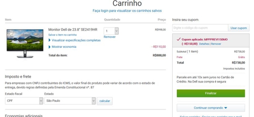 Usem o cupom MPPPREVI150MO que o monitor sai mais barato do que eu tinha colocado antes. Tá valendo MUITO à pena!