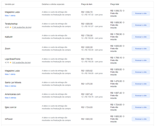 Forma de pagamento: R$1.349,91 em até 12x sem juros com o cupom PINAUTA