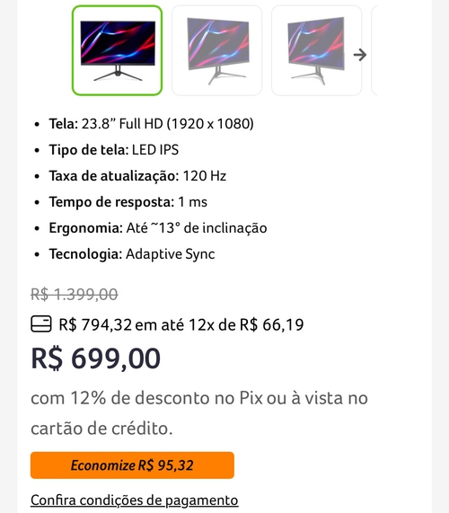 Caro. Peguei por esse preço o de 27pol 180Hz + teclado nitro 5 ano passado.