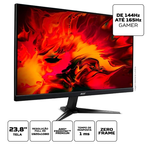 Monitor Gamer Acer Nitro Full HD, 23.8'', VA, 165Hz, 1ms, FreeSync, DP [CONTAS NOVAS]
