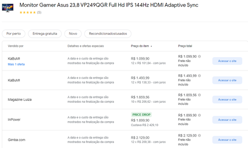 Menor preço segundo o Google Shopping