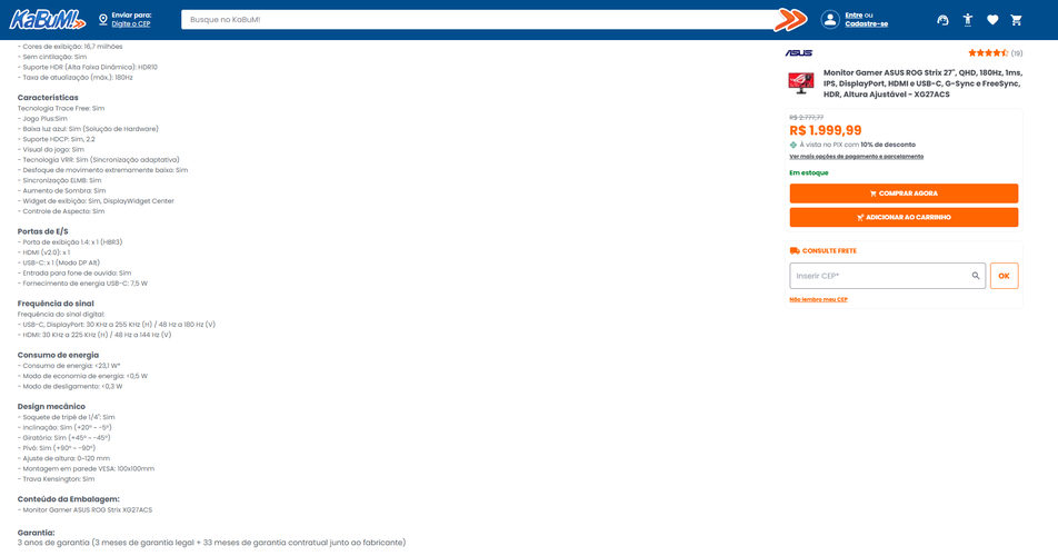 Ou compra o monitor QHD mais CXB, que é uns 900 conto da AOC.