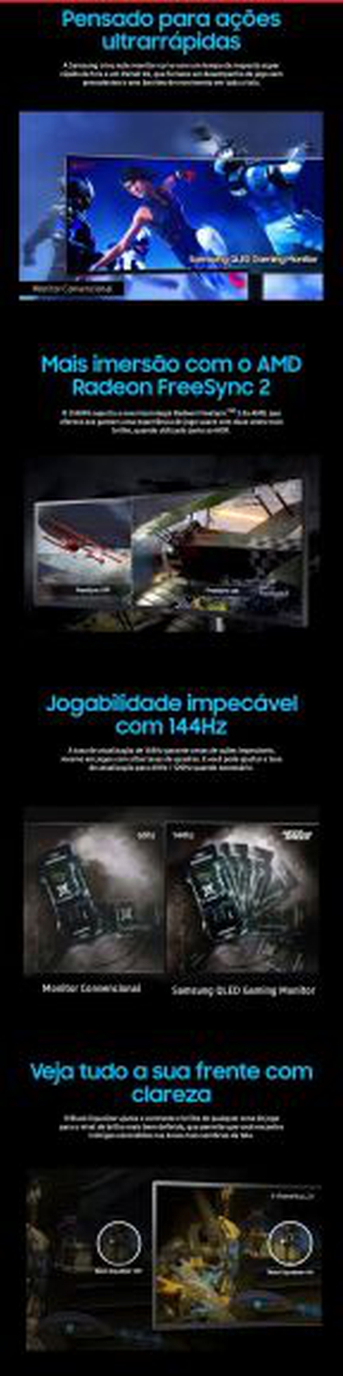 Monitor Gamer Curvo Samsung QLED SuperUltraWide 49" 1ms 144Hz Odyssey CHG90 | R$6569