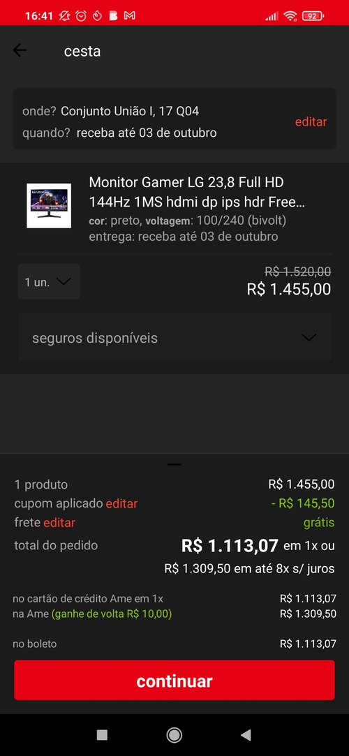 Comprei. Frete grátis e ainda recebi 10 reais no Ame
