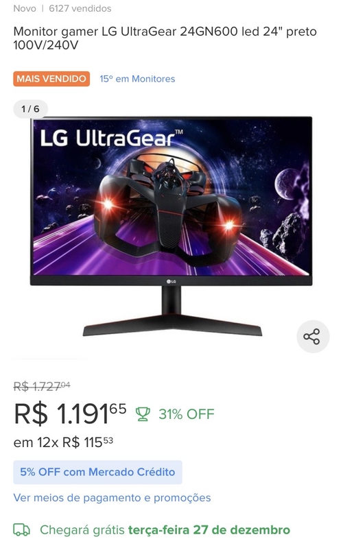 Esse do anúncio (24”) OU a versão em 27” (27GL650F-B) por R$ 1.399,00 à vista/frete grátis?
