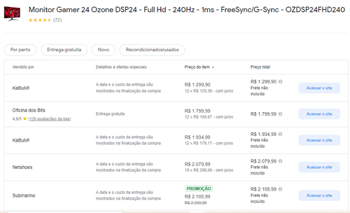 Menor preço segundo o Google Shopping