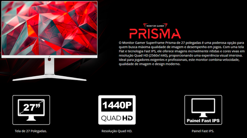 Monitor Gamer SuperFrame Prisma, 27 Pol, Flat, Fast IPS, Quad HD, 0.3ms, 180Hz, FreeSync