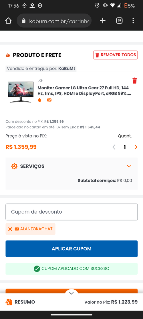 O cupom aplica no carrinho, mas na hora de finalizar o pedido, nao funciona