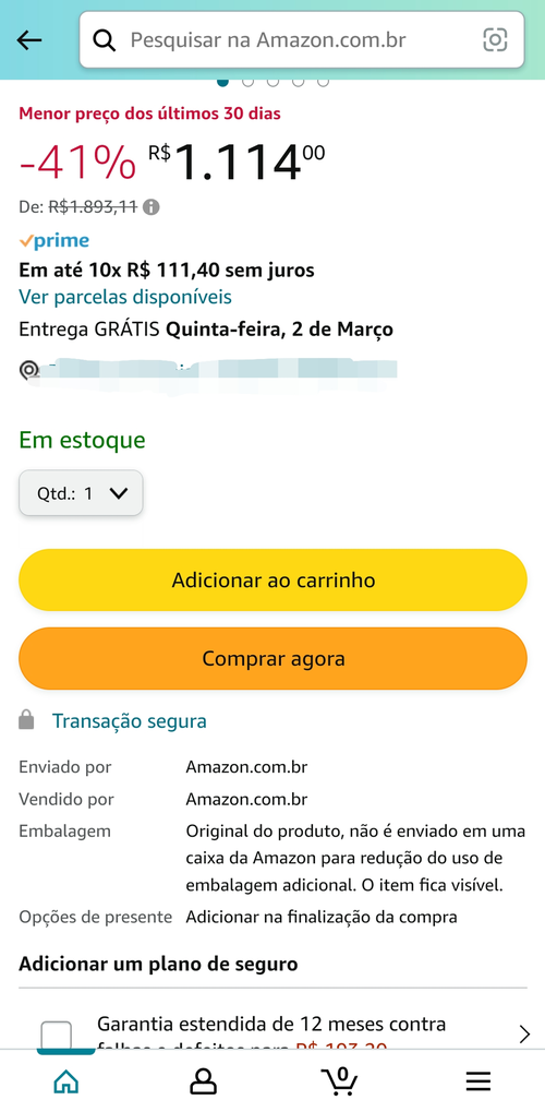 Vendido e entregue pela Amazon
