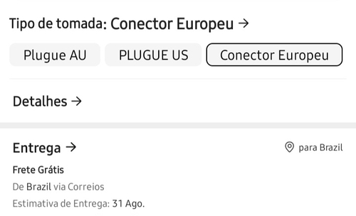 Selecionar Conector Europeu pra ser enviado pelo Brasil sem taxa