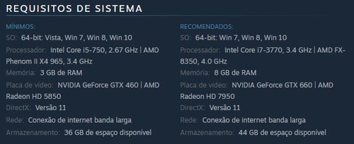 - É necessário um PC com placa de vídeo dedicada de entrada para rodar o jogo;