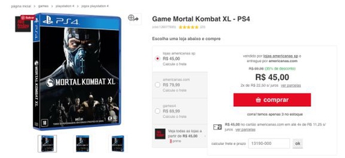 Mortal Kombat XL - PS4 - $45