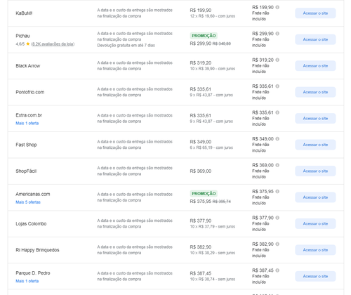 Menor preço segundo o Google Shopping