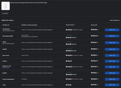 Menor preço segundo o Google Shopping