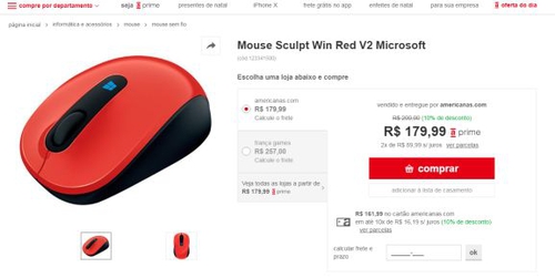 Mouse Sculpt Win Red V2 Microsoft - R$ 39,99