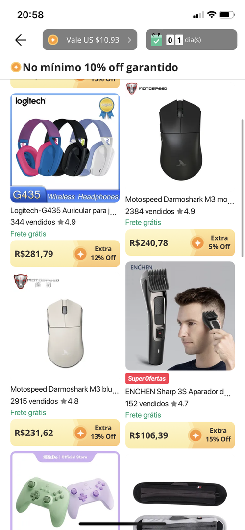 Mas se entrar na conta do Ali e ir em Minha conta > Moedas > e encontrar o mouse por lá, vão conseguir 10% extra de desconto.