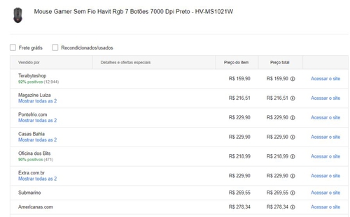 Mouse Wireless Gamer Havit MS1021W, 7000 DPI, 7 Botões, RGB | R$160