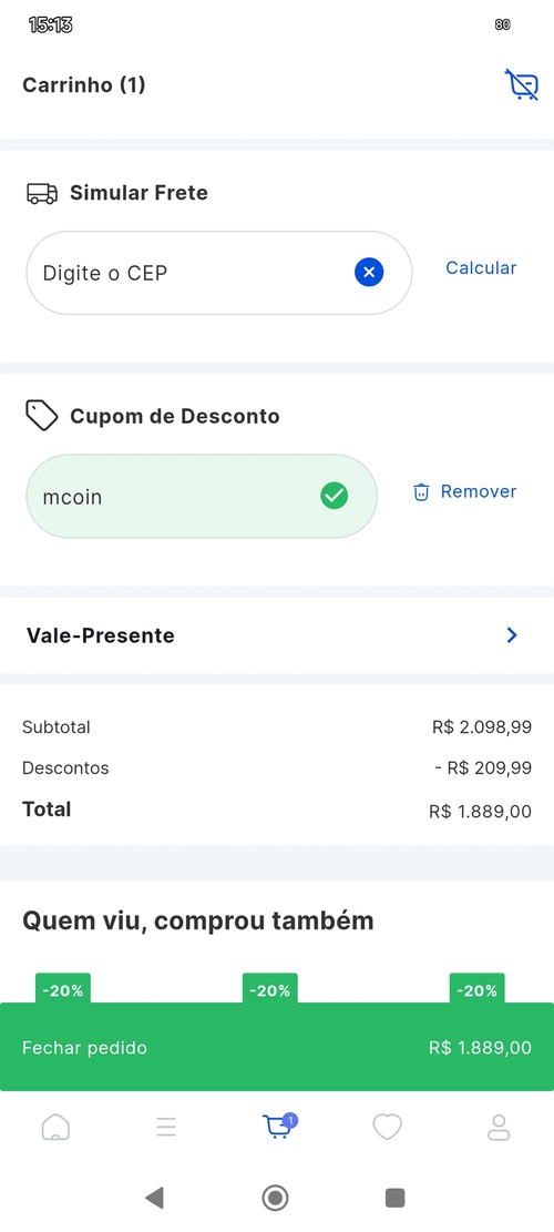 Para usar esses 567 multicoins (cashback), vc terá que comprar R$1890 no site em até 30 dias...