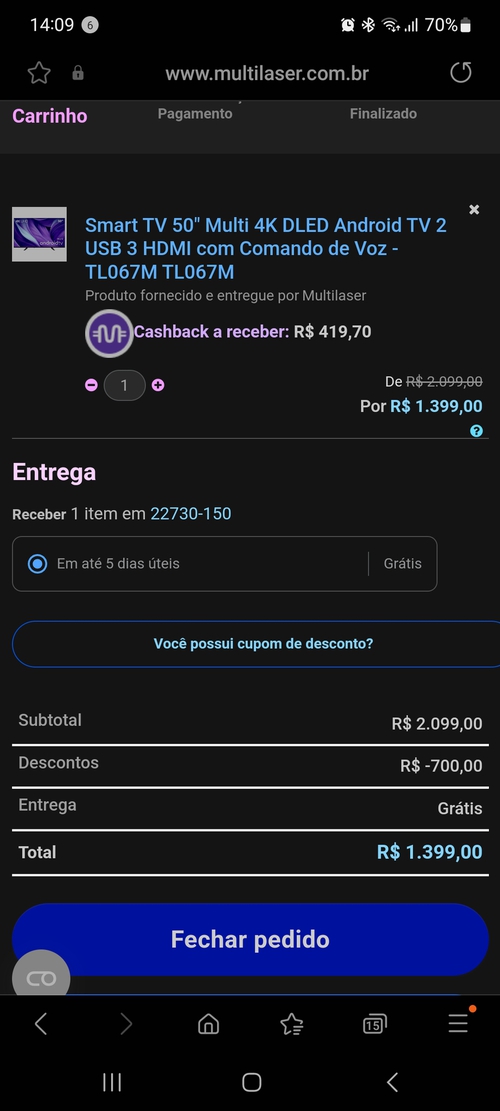 Resumindo, pra esse cashback valer a pena você precisa criar um ciclo vicioso de compras de produtos multilaser. Compra recebe cashback usa na próxima compra, recebe novamente cashback usa na próxima compra e assim vai. Talvez valha a pena pra revender. Não deve ser difícil vender uma tv 4k de 50 polegadas por 1500, por mais que seja multilaser