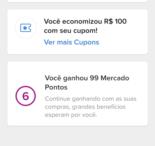 Esse cupons, de R$ 100 e o de R$ 50 Para o nível 6 foi bem legal.