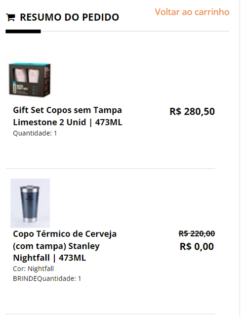 Ótima promoção, 266,5 no Pix pra dois copos sem tampa + 1 com tampa. Dica: dá pra selecionar qualquer cor do copo com tampa como brinde, é só ir em "Finalizar Pagamento" colocando o cupom, mas depois de aparecer o brinde clicar em "Voltar ao carrinho". O brinde passa a dar opção de selecionar qualquer cor. Comprei assim e ganhei o Maple de brinde