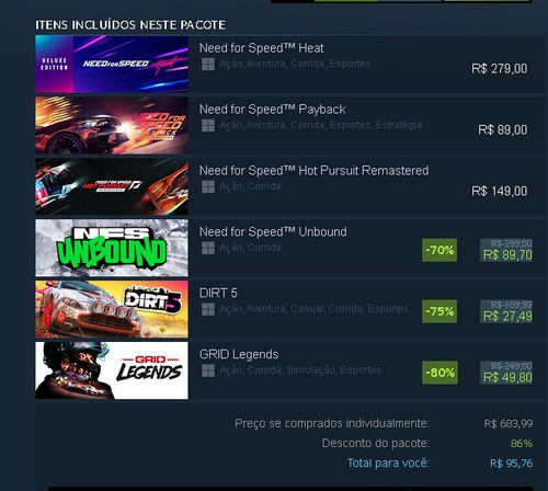 Vale mais a pena pegar o bundle de jogos da corrida da EA, e tem um esquema pra pegar esse pacote mesmo se você já tiver um ou mais jogos na conta.