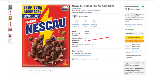 Se tivesse escrito "Nescau Cereal matinal 14 unidades de 770g", ai sim caberia Procon. Então, o máximo que vai acontecer é eles devolverem o dinheiro mesmo e você ficar com a única unidade mesmo. O que não é ruim mas esperar 14 unidades, é querer gastar a sorte a toa.