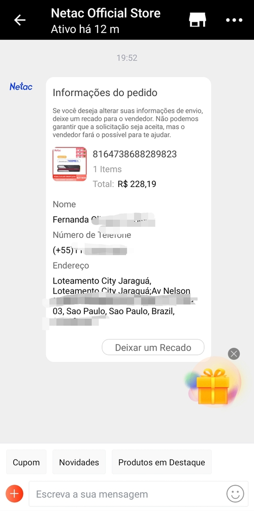 Aqui tá dizendo que o cupom NETAC8 esgotou