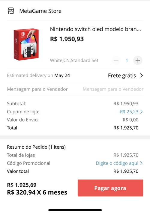 Eu comprei e chegou tranquilo, porém eu comprei na loja Nintendo Switch Store dentro do ali express, demorou 21 dias e foi taxado em 170, veio com a tomada toda cagada, tive que comprar adaptador, mas ainda assim vale a pena do que comprar aqui no BR.
