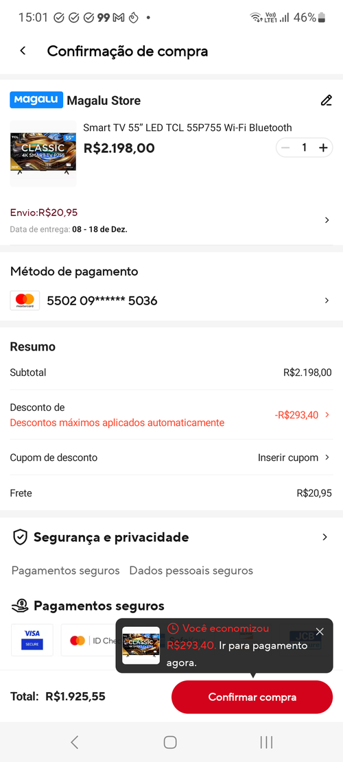 Vale o investimento de R$154 por + 5 polegadas? A de 50" está R$1751