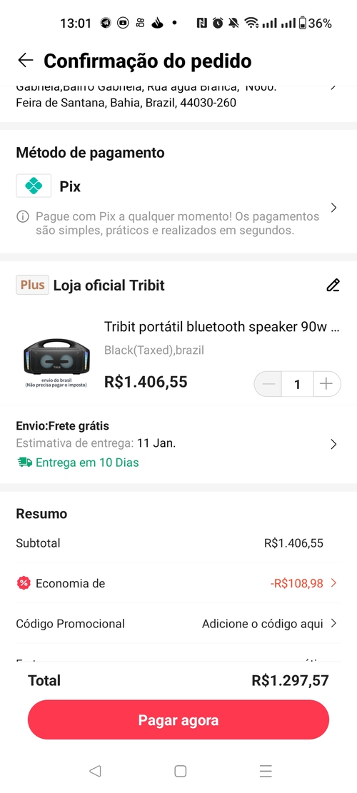 [No brasil] Caixa Tribit Portátil bluetooth speaker 90w